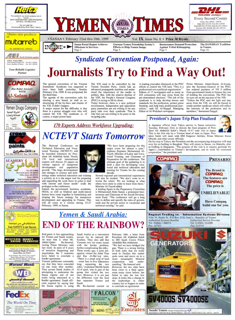 Sanaa, weekly 18/2/99 (Yemen Armed Forces) Main Headlines: -Planning Undersecretary Hisham Sharaf has announced…