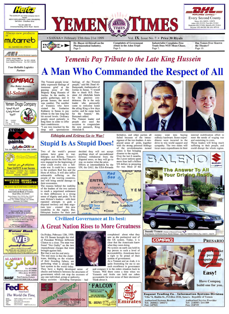 Sanaa, weekly 11/2/99 (Yemeni Armed Forces) Main Headlines: -British Prime Minister Tony Blair has…