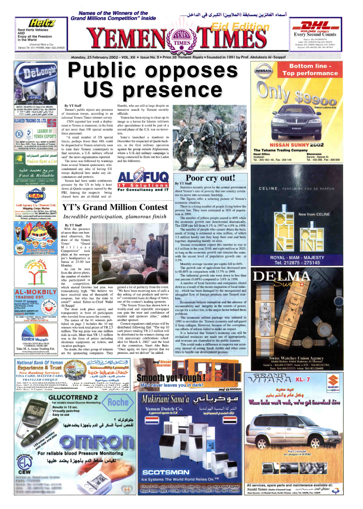 Al-Qabaitah monthly newspaper, organ of Cooperation Charity Society, Qabaitah, March 2002 Main Headlines: -YR 14…