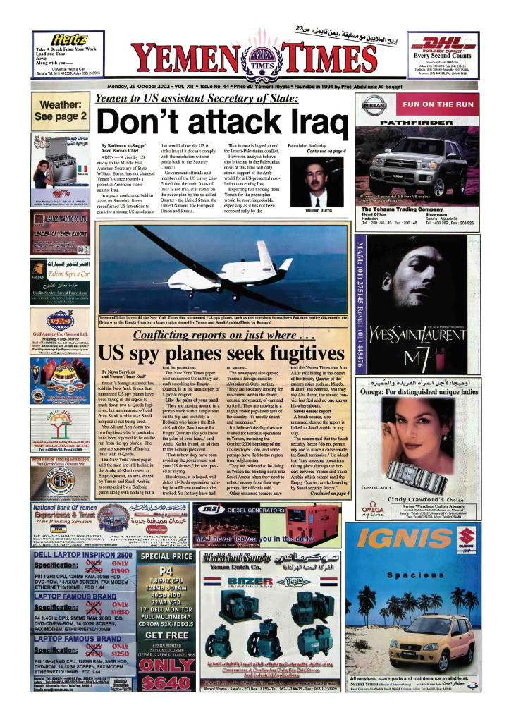 Al-Jamaheer weekly, organ of Arab Baath Socialist party 20 Oct.2002. Main Headlines: -Details of American-Zionist…