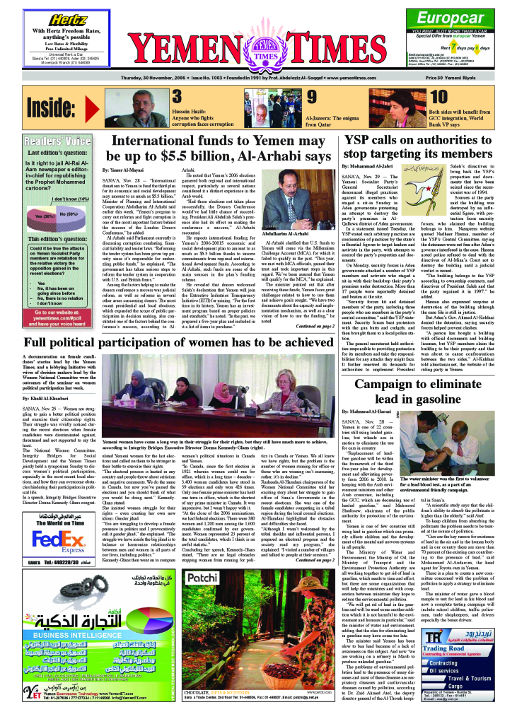 By: Mohammed KhidrMy wholehearted congratulations to the Yemen Times, the widespread English-language newspaper, its Editor-in-Chief…