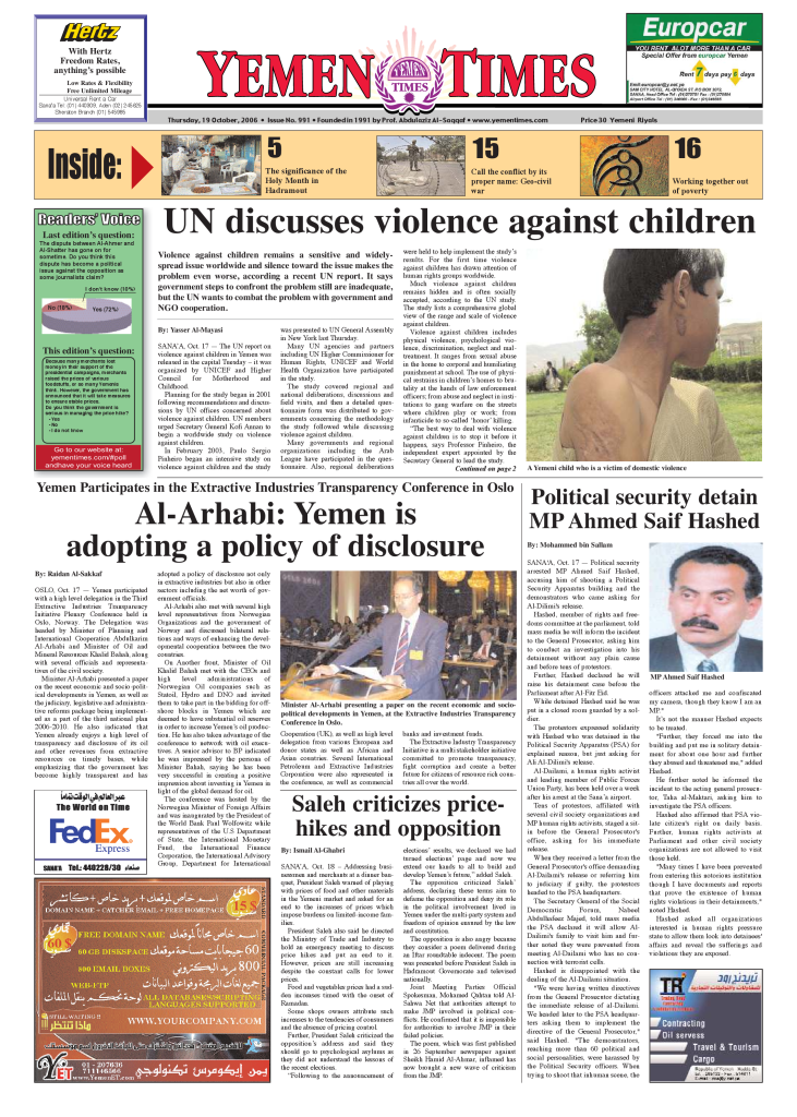 Abigail LavinSeptember 2006 brought an unprecedented development in the Middle East: The government of Yemeni…