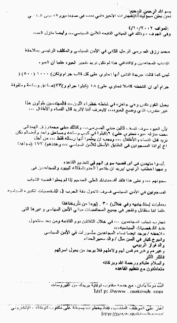 Statement gives one-month ultimatum for release of detainees Al-Qaeda sympathizers claim bomb responsibility [Archives:2002/16/Front Page]
